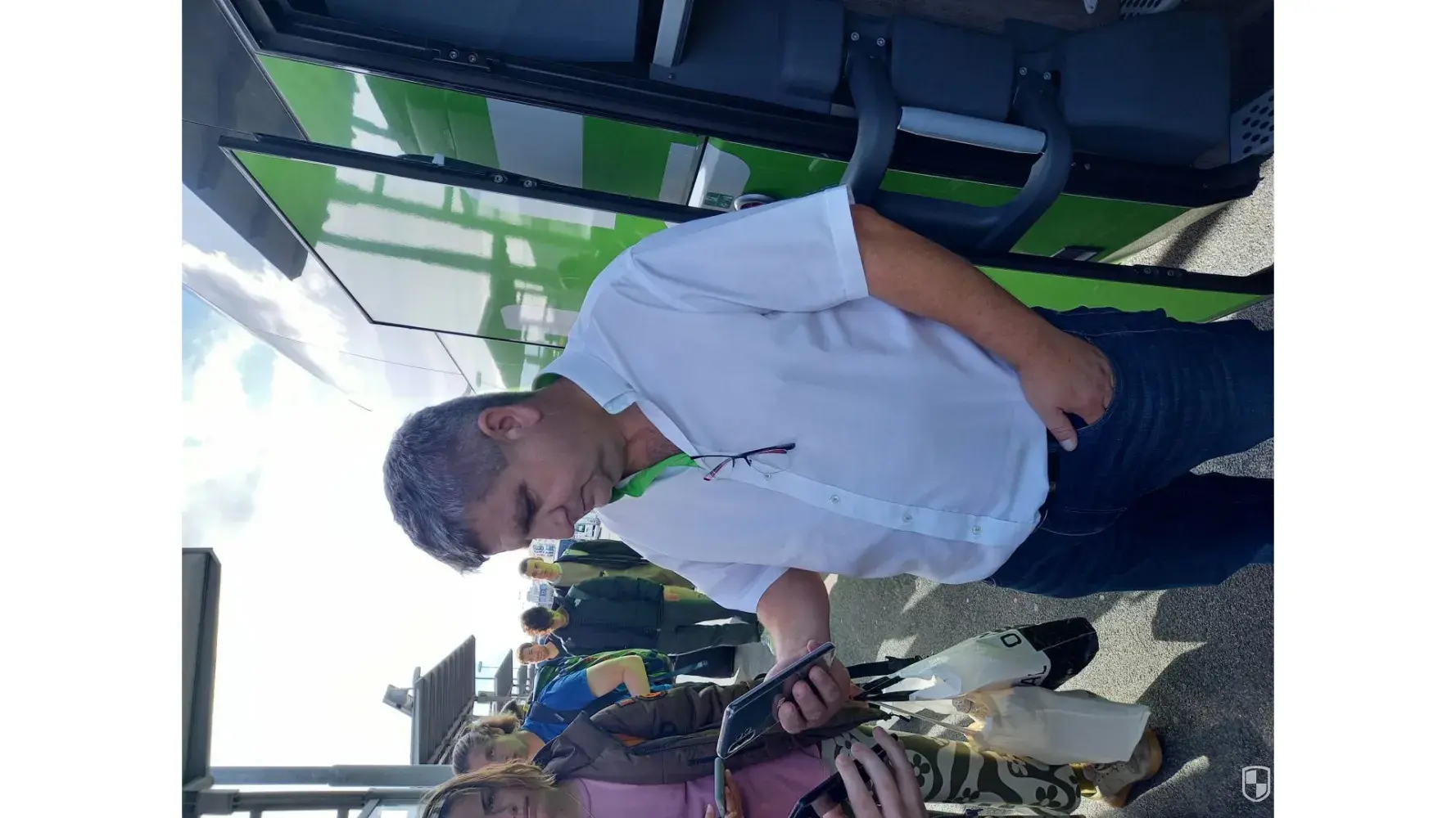 The bus arrived with a delay of more than 1.5 hours. The bus driver Nick has scanned my ticket and I put my two bags in the hold.