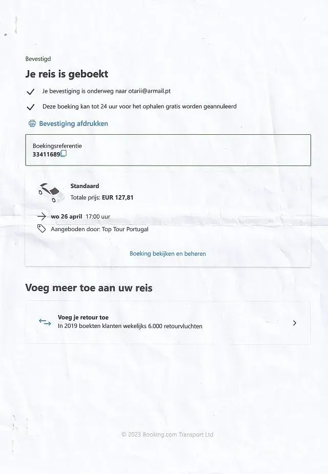 We stopped there for quite some time. Finally, we departed again, still following toll-free roads and traveling at a low speed (a small car in front was leading the bus). Eventually, we arrived at the bus station near Gare do Oriente, 35 minutes late. Since we needed to travel further to Rhaiana da Costa, we had already arranged a taxi in advance (booking reference: [protected], priced at €127.81, Top Tours). According to the contract, the taxi would wait for up to 20 minutes after the scheduled arrival time. However, since our bus arrived 35 minutes late, we missed the taxi and had to take another one, paying an additional €127.50.