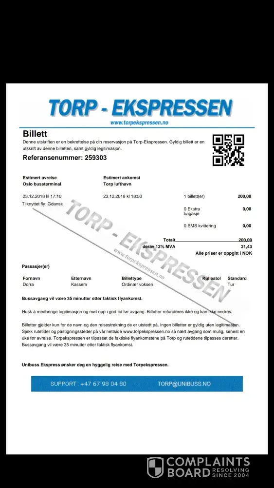 on 23rd of December 2018 I was traveling from Årjäng (Sweden) to Oslo (Norway). The bus was scheduled to leave at 15.05 and arrive at 16.45. I had a ticket for another bus from the same station at 17.10.