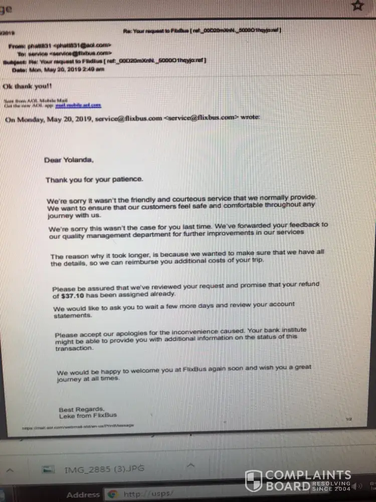 As a result, I am leaving Europe and requested refund since 26 May 2019. It's 14 June and no reply from Flixbus was given.