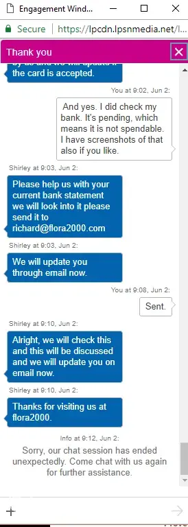 4 and a half hours later. I finally get the live chat rep. Back on the screen But it's not Sherli anymore.