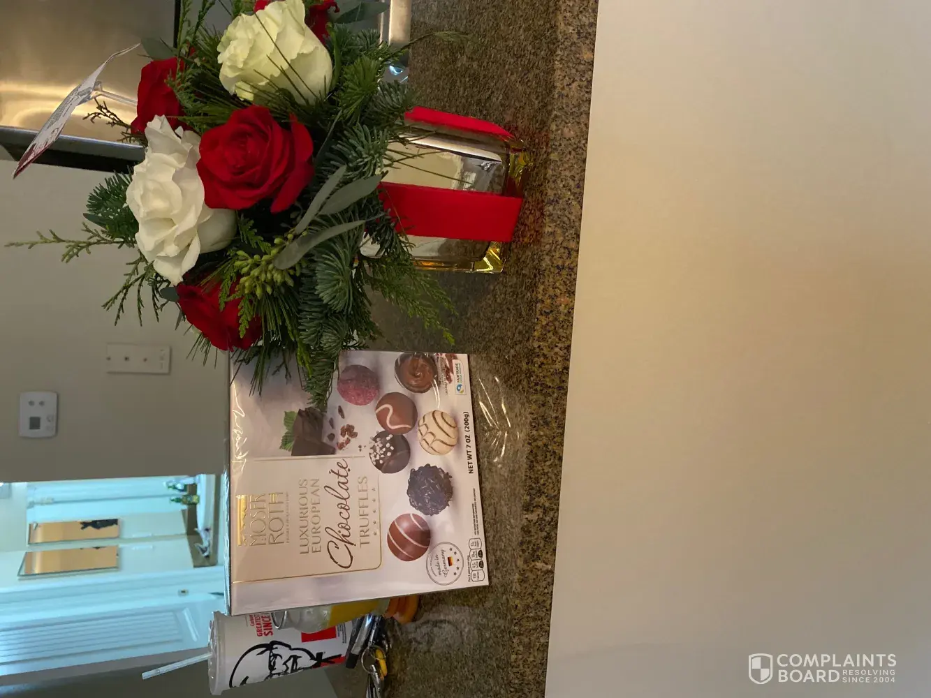 I ordered a bouquet of over a dozen roses to be delivered on Christmas Day. I paid over a $100 for this and received only 6 roses filled in with pine. It was way smaller and was delivered the day after Christmas. Iam highly disappointed and do not recommend this company to anybody. Below is what I received I paid for the 86.00 bouquet with lots of flowers and added the chocolates for a total of 116.00$