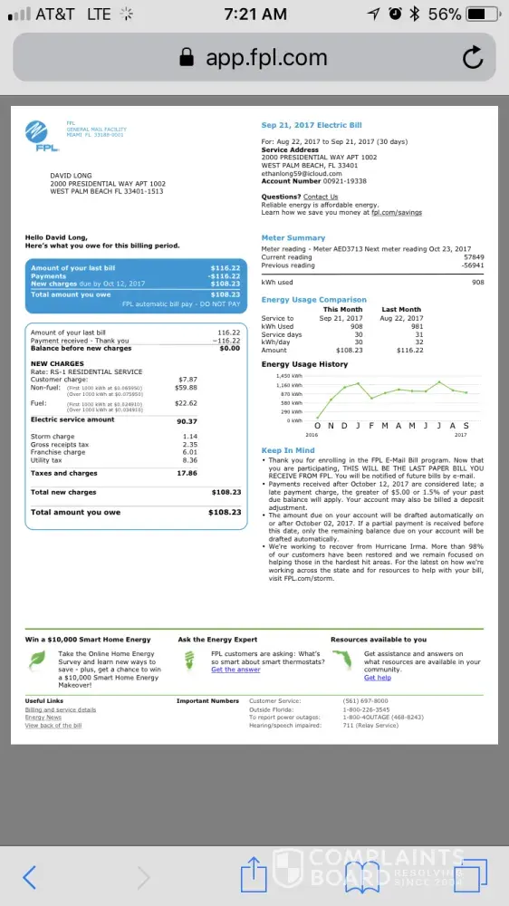 Florida Power & Light [FPL] Complaints Page 25 of 40