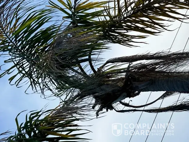 WHEN MY POOR PALM TREE DIES ARE YOU GOING TO COME TO MY HOME TO CUT IT DOWN? It's going to cost a small fortune to cut down a 30' or taller palm tree. IT IS ALSO A HUGE HAZZARD NOW IN THE MIDDLE OF THE HURRICANE SEASON TO LOSE THAT PALM TREE OR WEAKEN IT SO BADLY THAT IT CAN TOPPLE OVER ON TOP OF MY POOL, OR GAZEBO OR MY NEIGHBOR'S YARD!