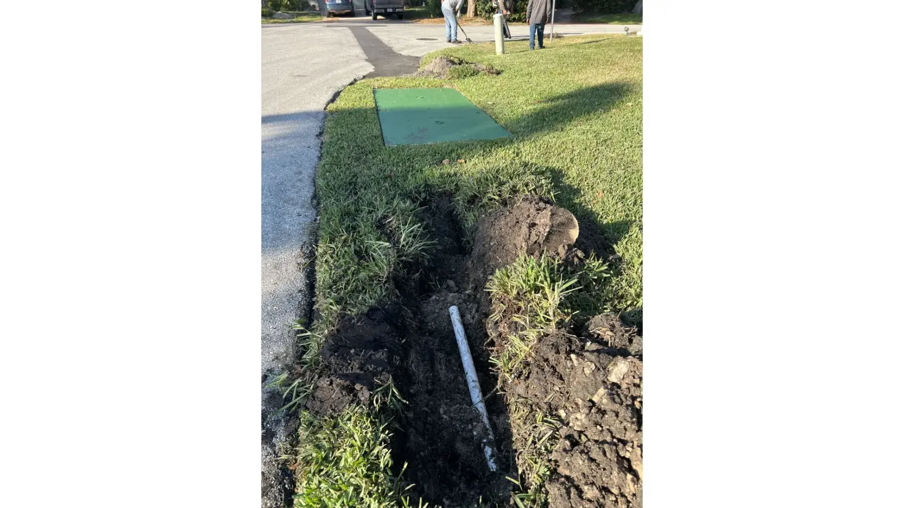 While FPL was installing new power lines on Del Haven Drive in Delray Beach they damaged some sprinkler zones. Where you put the large concrete boxes with covers You "cut" off (literally) a 11/2 inch supply line. We have a sprinkler company attempting to trace the other end which ran directly into your box. The entire zone has dead grass, some you installed. Many heads are buried or missing. The association should not be expected to carry this cost.