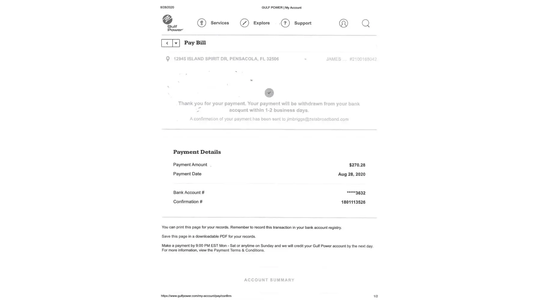 My bill with Gulf Power two years ago in August was $290.