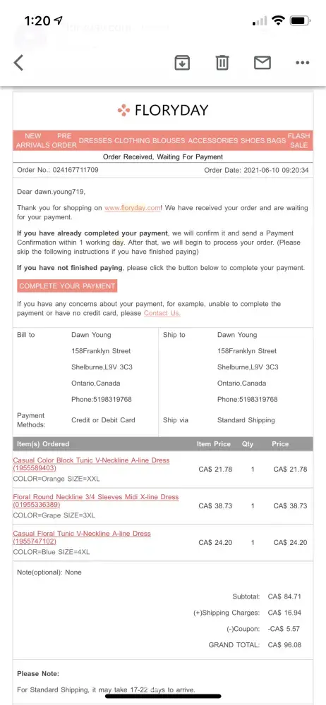 This website, FloryDay, is just terrible. I've never seen anything like it in my life! They're just a bunch of money-grabbing scammers pretending to be an online clothing store. Don't trust them!