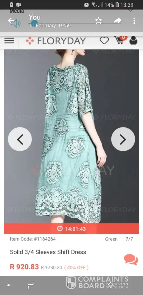 I therefore was left with no choice but to return the item to the dispatch address. When I eventually managed to contact Floryday and explain my position, they only offered me a 50% refund. By law, Florday have to issue a refund if the goods are returned within 14 days. However they make it impossible for you to return the goods within 14 days as they provide no returns information, and feel its acceptable to offer a derisory 50% offer.