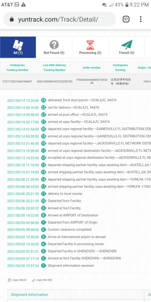 Order not received from Floryday. Tracking shows delivered but not received