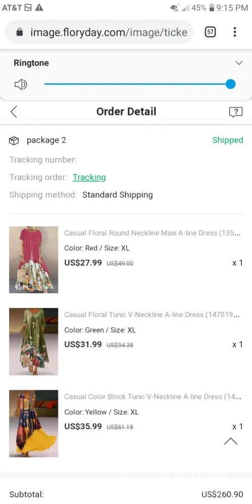 On March 7, 2021, I ordered three (3) dresses from Floryday. My order number was: 021408328018. At that time, I was told the dresses would arrive by the 27th. I actually received them March 22, 2021.