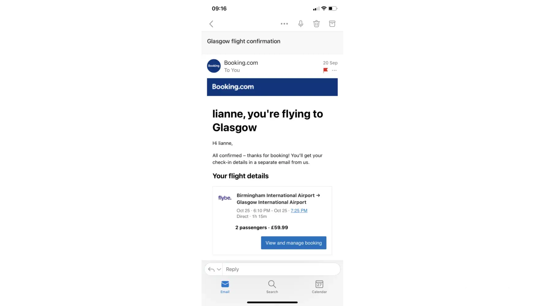 59.99 - BE796 Birmingham to Glasgow 2 passengers (one of which is 10 years old)