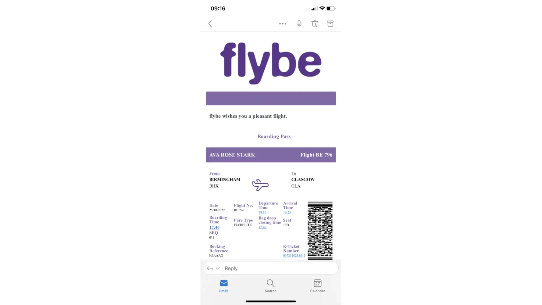 My flight back from Birmingham to Glasgow with my daughter (because she is too young to travel alone) was also booked with Flybe and due to depart Birmingham at 1810 that day.
