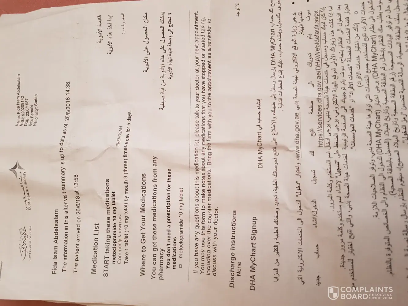 4- Due to all this and the pressure we had in Tbilisi my wife fell down in the bus in Dubai Airport, and we have been taken via the ambulance to terminal 1 as you don't have clinic in terminal 2 …….but the doctors was not able to help my wife without seeing our passports, yes the same passports that were handed over to Mr, Ranjdeen who no one knew his name at that time, I did escalate this to police officer (Yousif) I found in the clinic and he did his calls to force the doctors to help my wife, the medical report is attached herewith.
