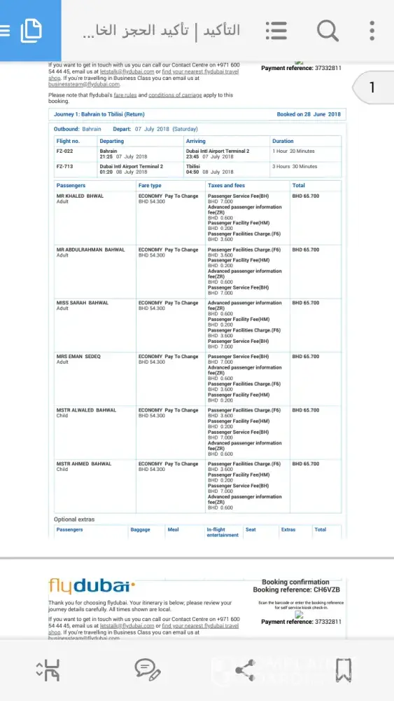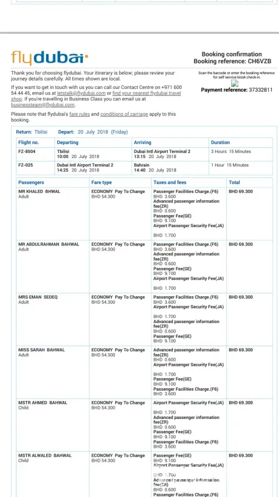 My tickets were paid on 28 June 2018 and the flight dated July 7, 2018 coast 2270$for 6 passengers from Bahrain airport to Telbisi but flydubai staff prevented us from cutting the board of the tickets. I tried on their website to avoid any problem but they didn't care and didn't tell me before to cancel the reservation . I suffered a lot and my family, We traveled by car from Saudi Arabia to Bahrain and paid Taxes and visas fees .Who bear all these fees and losses in addition spoiling my holiday.