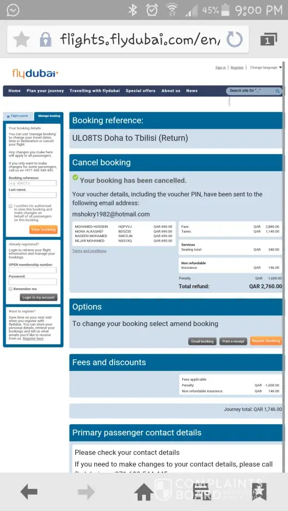 I’m writing this email with hope of my last try. I’ve reported the incident to your customer care and through multiple emails. Just to brief here, I booked 2 tickets from Fly Dubai website on 2nd Sept 2015 from Dubai to Delhi for travelling date 22nd Sept.2015 .While checking the cancellation process my friend wrongly pressed cancel button on your website and somehow my tickets got cancelled. Immediately within 2 minutes I called to your customer call center and explained the complete situation to agent at call center. That agent asked me to send an email to [protected]@flydubai.com and even he mentioned during the conversation that my cancellation request can be revoked and I don’t need to pay anything extra. Immediately after the call, I sent an email to [protected]@flydubai.com but the response I got from them is really shocking for me that they can’t do anything on this. They mentioned in the email that the voucher has been generated for my cancellation request. But for your information till now I’ve not received any email for cancellation or for any voucher. After all this I again called to your customer care but the response was same as in email. Even I sent another email for which I am still waiting for reply. I’ve attached the emails related to this incident.