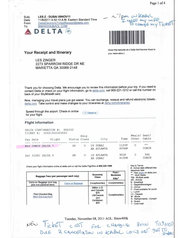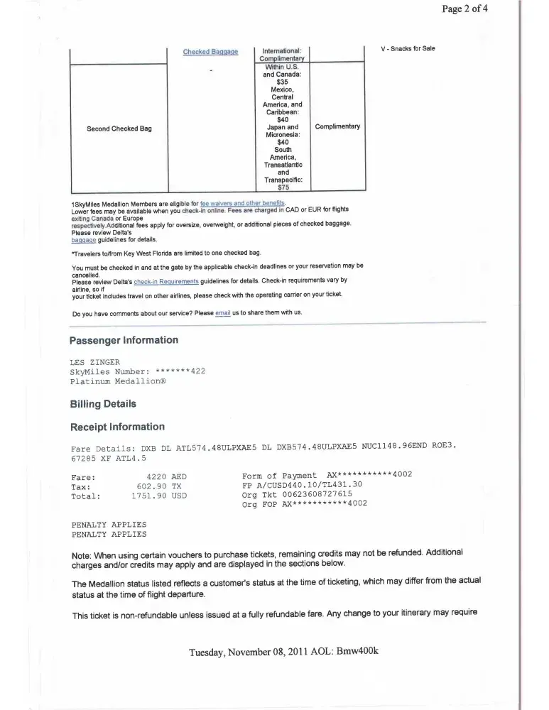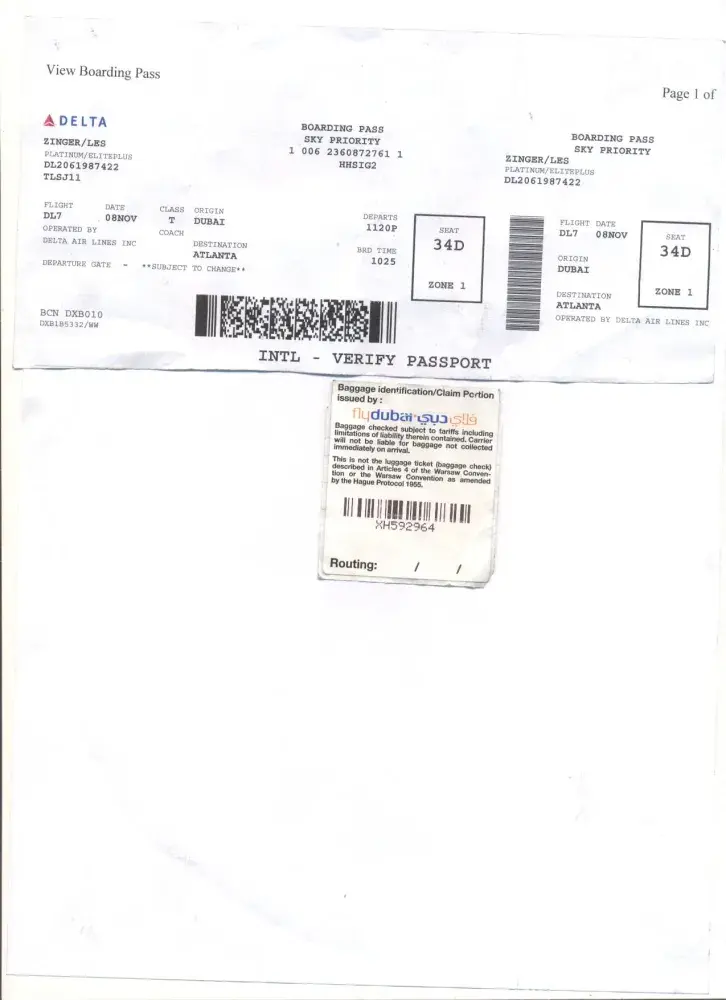I have attached my baggage claim ticket (Proof of checking in for the flight) , and my delta tickets for 8 nov for $1320.72 the ticket for 9 nov was $1751.90.