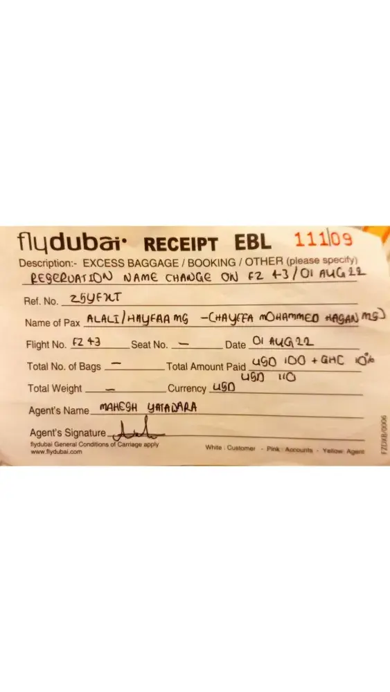 So, I tried to follow-up my travel agent and I managed to get the return ticket, at this it was around 45 to 50 mins before flight. Very sadly at this time they were closing the counter and they told me I have to re-book my flight for evening flight. I tried my best to explain to them and beg them to let me check-in, but they refused to let me in. Annoyingly, I lost the ticket which costed me AED 1,379.42 (Equiv to USD 368.12) and I had to rebook again