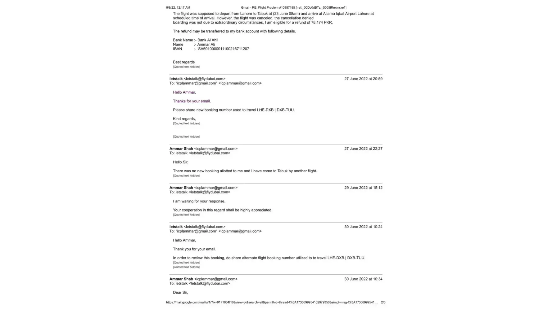 My name is Benazir. I had a flight on 29th March 2022 with fly dubai FZ 1208/FZ 1461