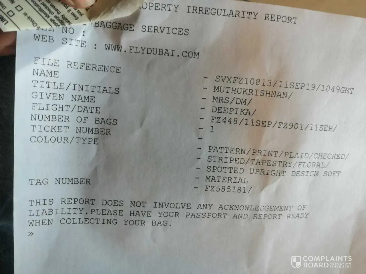 sir/madam, Im deepika muthukrishnan, i have travelled in flydubai on september 11, 2019 from chennai(MAA) to yekaterinburg(SVX) and then to perm(PEE) by s7 airline . but i didn't get my baggage at yekaterinburg airport . then I complained to flydubai customs at airport and they give one report about delayed baggage and they said they will send it perm(PEE) airport, its near to me. but yesterday they called me from yekaterinburg airport and they said i have to come to yekaterinburg airport to collect it. sir i have reached perm at the same date by s7 airline . how can i go to yekateringburg airport, its nearly 420 kms from my city. sir its not mY fault sir, , , its a mistake from your side sir. why should i book flight from perm to yekaterinburg and to perm again for collecting baggage, its nearly 10000ruble. why should i spent my money sir, .its not my fault. i want my baggae at perm airport or send it by parcel to my adress given below, because i dont know anyone at yekaterinburg to collect it, and im an indian girl also is not possible to collect it at yekaterinburg airport sir. kindly accept my request sir. All the related documents are given below, sir