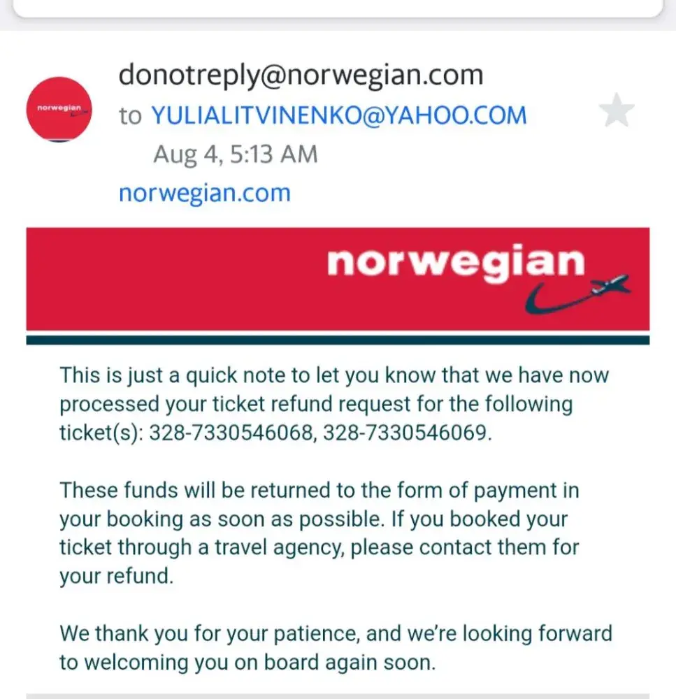 I attached my confirmation from Norwegian and below is my chat with Norwegian this past week: