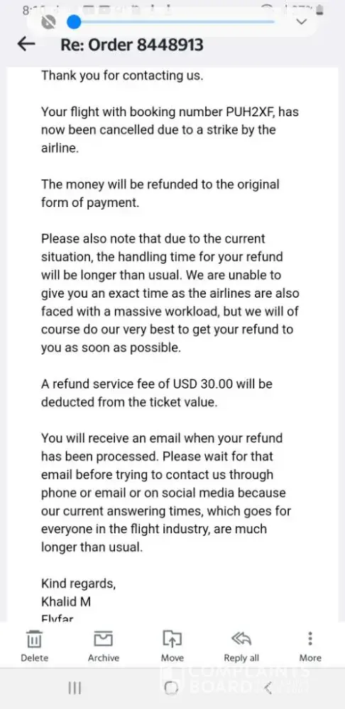 They also told me to buy travel insurance with XCover.com, which I then learned was a side company of FlyFar. Of course XCover.com will not reimburse me for the cancelled flight and extra lost expenses. They are a scam together.