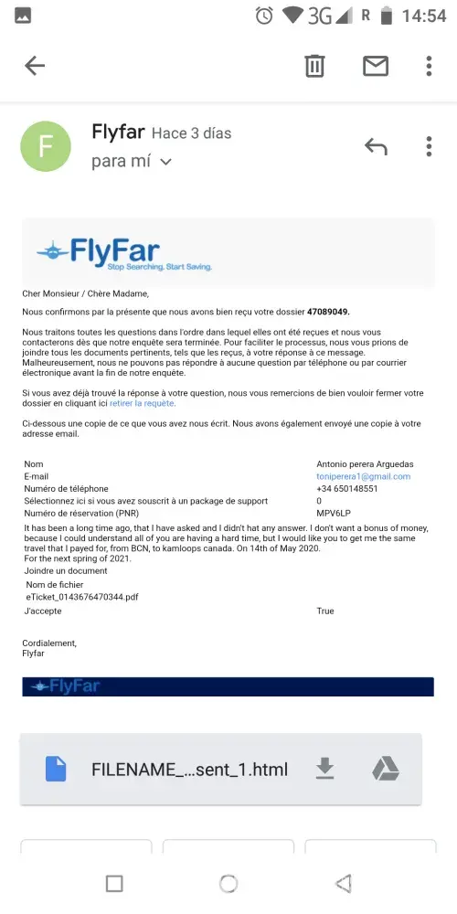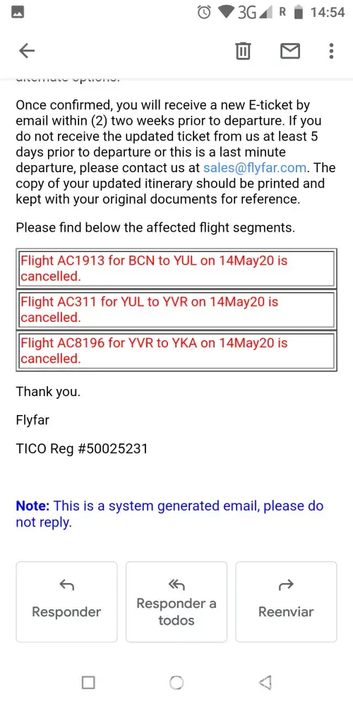 The last may of 2020! I've got cancelled a flight from Barcelona (Spain) to Kamloops (Canada). And I don't want the money back just get a bonus for the next time I will travel there, the next spring! I'm trying to contact them by email, at all the emails that they send, as an option, and since a week I couldn't reach them! But finally the last week I hat an answer from one of them, to saying that they seem to be okey to change my flight but it has to be by phone! I'm in France now, and I tried to reach them on all the phone numbers that I have found on internet and I couldn't.