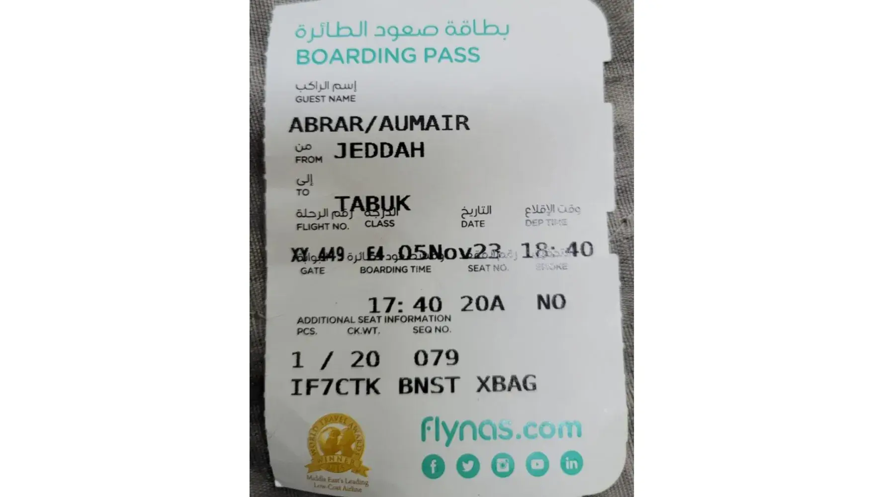 While returning back from Jeddah I re complained but yet no response from flynas Saudi Airline .