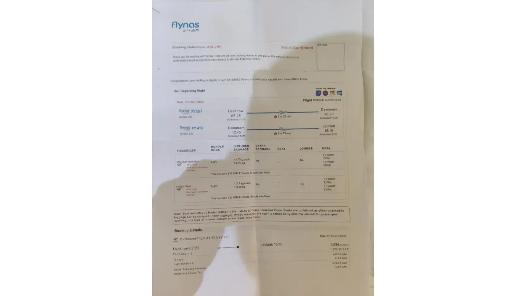 My sister and I had flight XY572 from Cairo to Jeddah on December 28th ,2023 at 20:05 PM with booking reference X8SYFC and B53MNY respectively