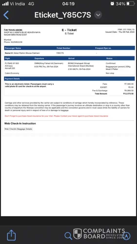 I urge Flynas management to address this issue promptly and ensure no other passengers face such a frustrating experience. Until this matter is resolved, I cannot recommend Flynas to anyone.
