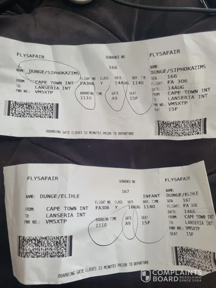 There were 8 members in my family and we were requested to pay a further R2900 to take a later flight.