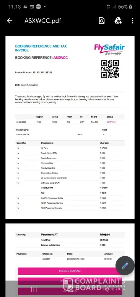 Before I go the legal route. I would like flySafair to resolve this internally.
