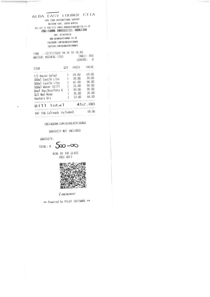 • Re-imbursement of R 250 for the slow lounge (Proof of payment for this can be sent to you)