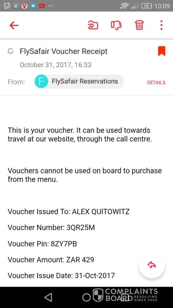 i informed the gentleman about my issue, i also forwarded my documents to him as proof of why i needed to fly to Durban.