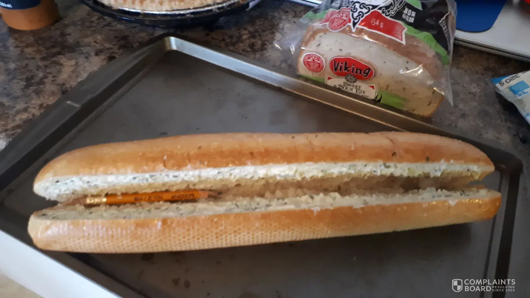 Hello there, I bought a Selection brand garlic bread from Food Basics on Jaimeson Parkway/Franklin Blvd on March 10, 2023. When I opened it up and took it out of the package to prepare with cheese before putting it in the oven, I noticed a PENCIL WAS INSIDE THE LOAF, SATURATED IN THE GARLIC BUTTER! I have attached a photo with this email. I WOULD LIKE SOMETHING TO BE DONE ABOUT THIS. If I didnt open up the garlic loaf to add cheese to it, I wouldnt have known the pencil was even in there and would have cooked it. This is a serious matter and completely UNACCEPTABLE and DANGEROUS. I had my in laws over for a birthday dinner, and we could have gotten led poisoning, broke a tooth, choked on it, and not mention the embarrassment to me after having to show my guests why we couldnt have garlic bread with our dinner.