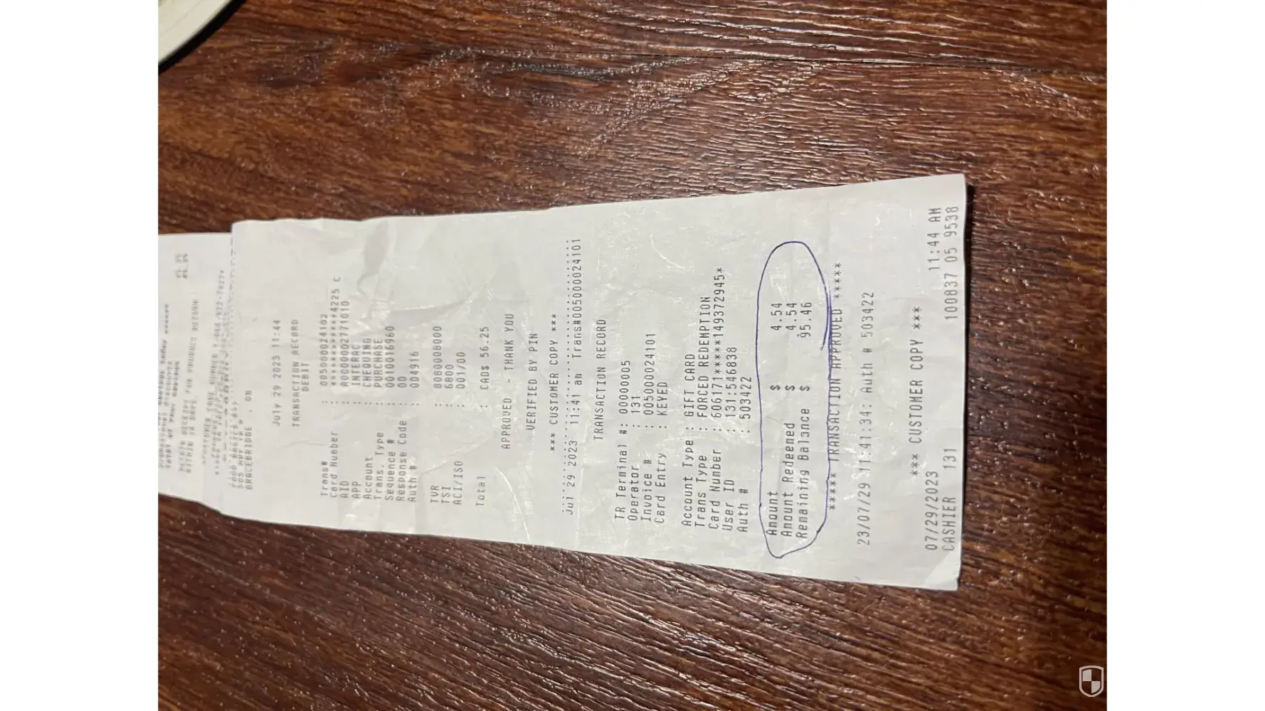 On july 29 at food basic bracebridgethere were several items at 40$ off the cashier who served me was extremely rude, no discounts were taken off, she refused to listen to me when I pointed that out, I just retired and was given a gift card, from my employer for $100.00 when she endorsed it as per copy of my bill the amount of $4,54 was redeemed remaining balance of $95.46 as per bill of sale I have kept, the remaing I paid with debit card, ithis was first time I used gift card, she endorsed the card for 4.54 and said it was finished, I asked to pay the 4.54 get the card back to take to my hr rep to imform the card wes endorsed, she refused and kept card, so I went to customer service, the rep was very nice and apologetic, she took off the 40% on the marked down items and refunded my money, after I explained about gift card, discrepancy she went back to cashier no 131 as per bill. And retrieved card checked the card and it had $95.46 left on it and gave me back the card, which the cashier would not, saying I t was endorced, my guess the cashier was going to pocket it, with the remaining balance, when I asked the customer service how this could happen, she replied she could not explain it