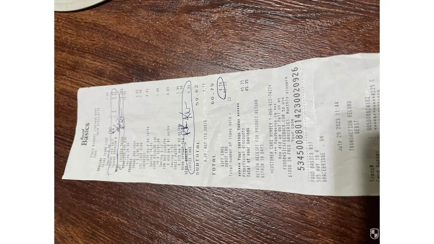 Today I brought groceries at food basics, and after checking the bill I found two issues.