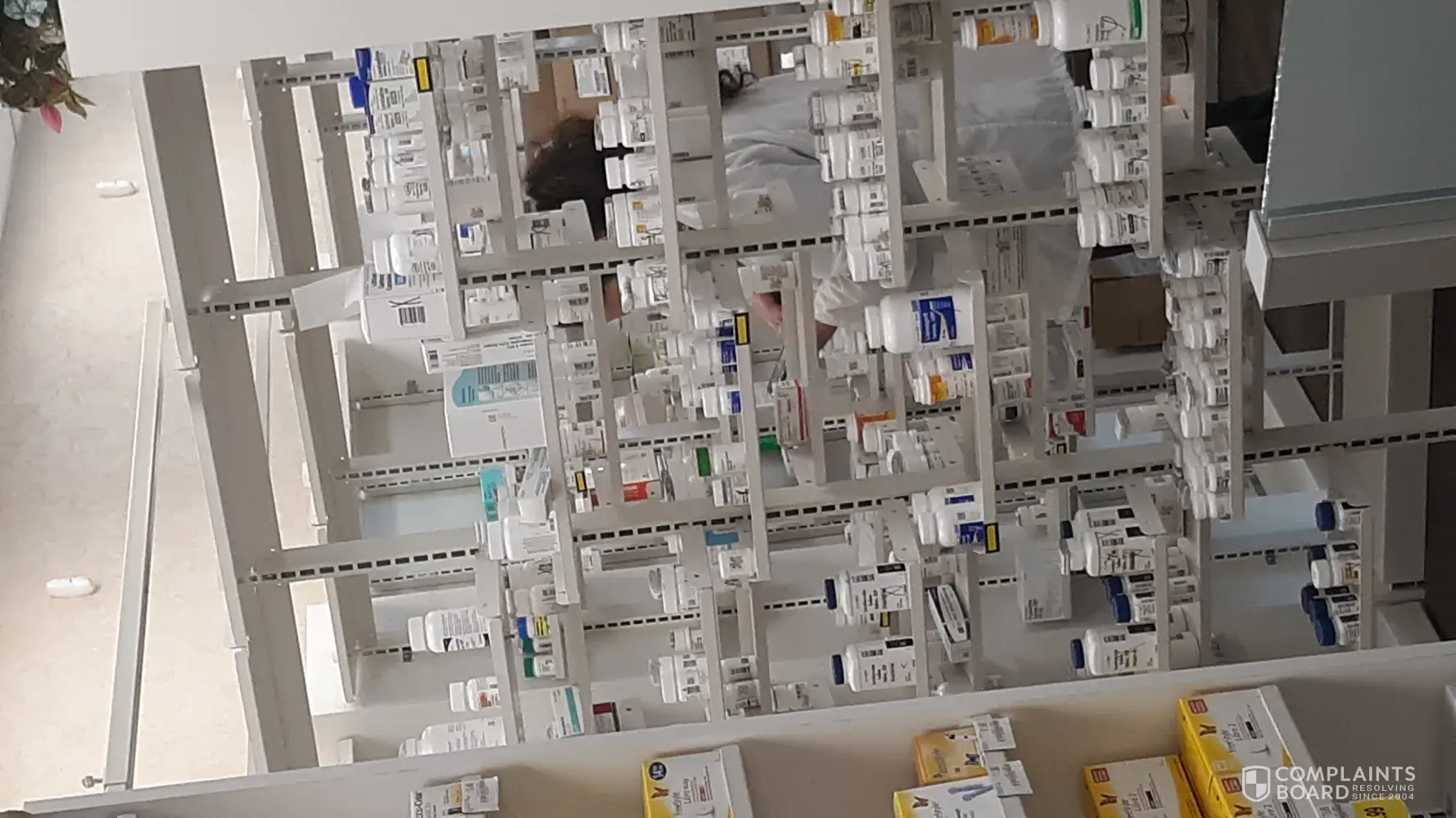 She is a floater and every time she is in the Calhoun store, she's on her phone. I have a photo to prove her being on the phone. She barely does anything else while the tech is left to do most of the labor around the pharmacy. I've watched and noticed this countless times. This isn't the only time either. She has done this EVERY. TIME. She comes to this store. In the picture shes hiding within the medication on her phone. The tech doesn't mind doing the work, but this pharmacist will not help her at times when it gets busy.