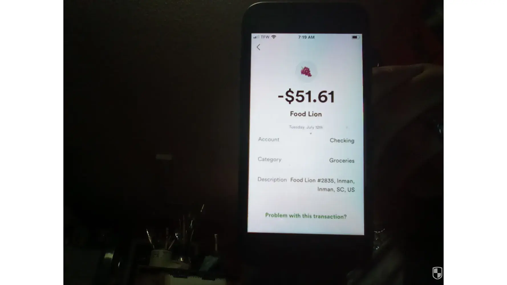 The problem I have with this is I was not at food lion at this time, I need my money back, now. I was there ealier and yes I know the time frame that I was there I get alerts that state the place and time as well as the amount being spent.