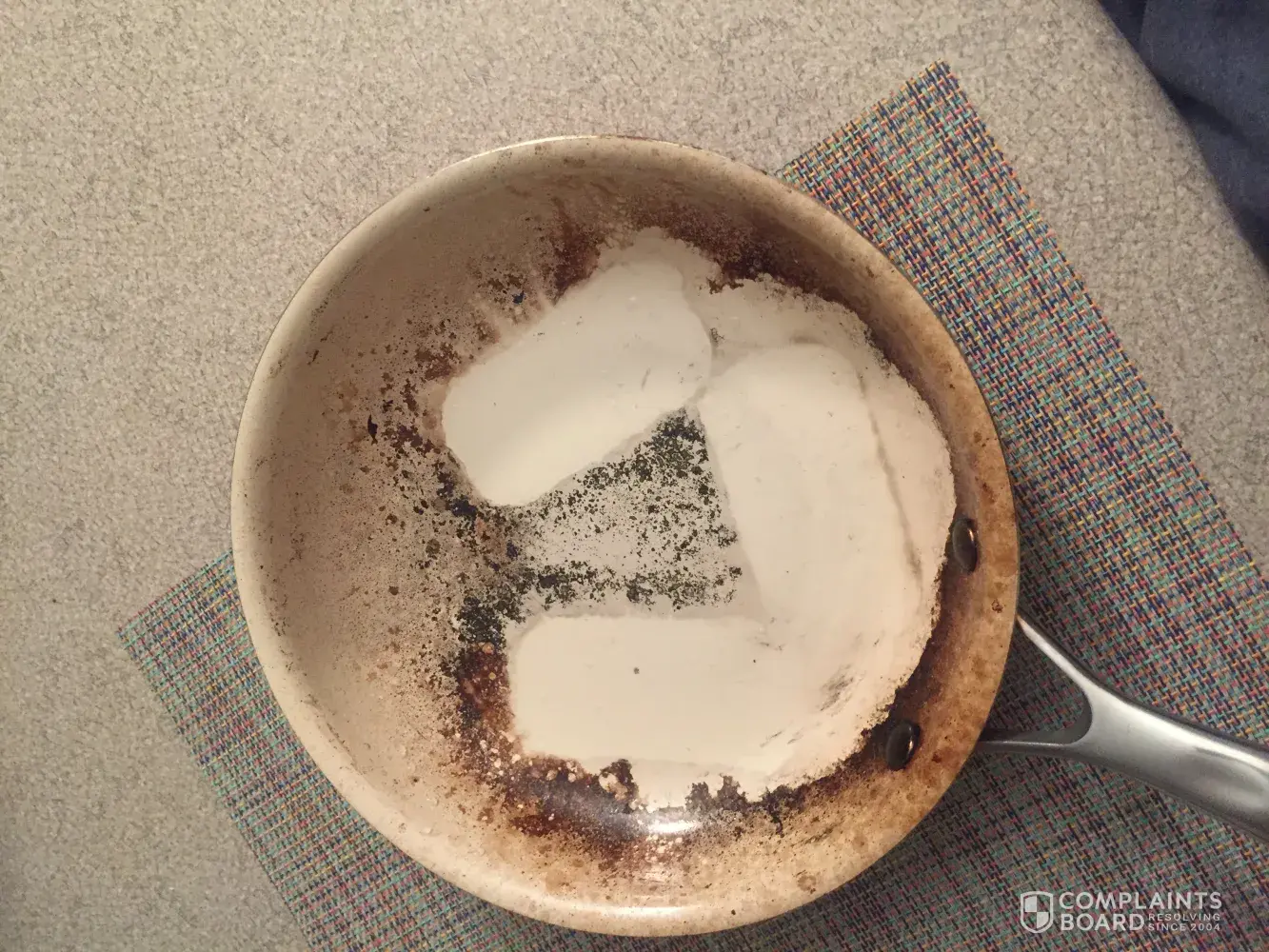Same here! And I just tried calling the number on here and it says invalid phone number. Have you been able to contact anyone about the crappy pans?