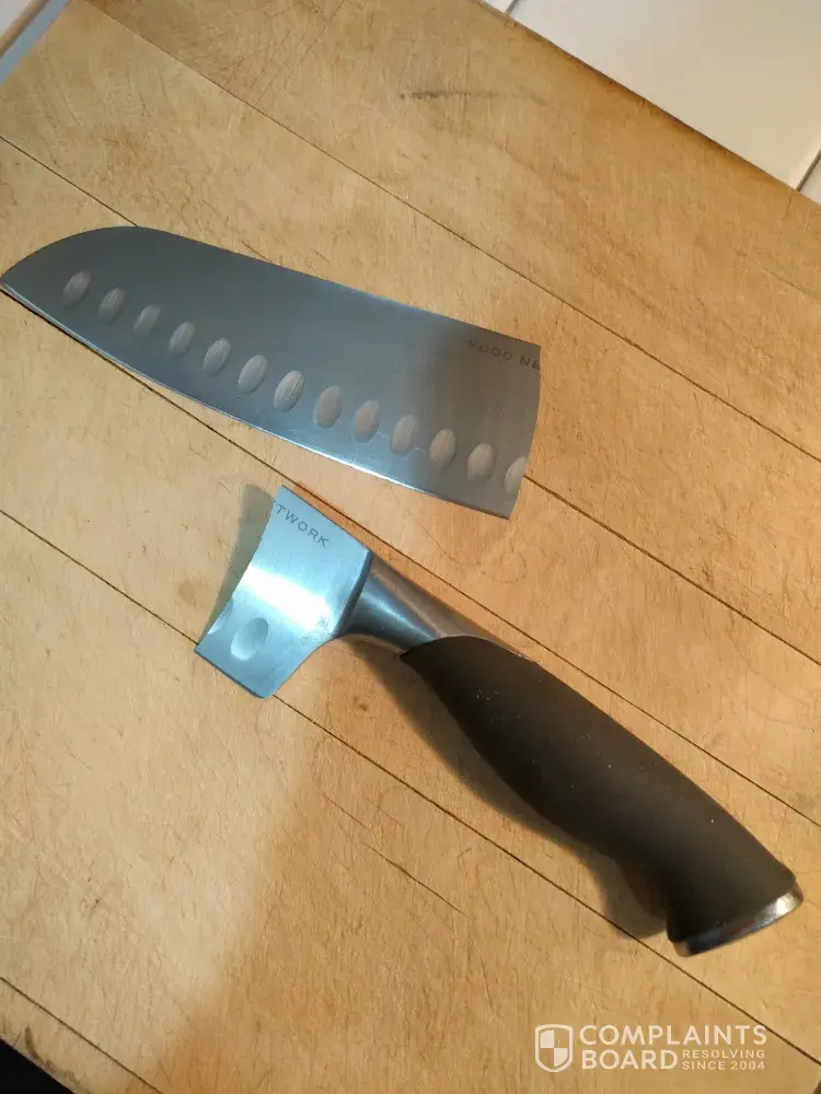 I bought a Good Network santoku knife two years ago at Kohl's. It's been a good knife. Unfortunately the blade recently broke in half while I was cleaning it. I was not putting much pressure on it at all when it snapped.