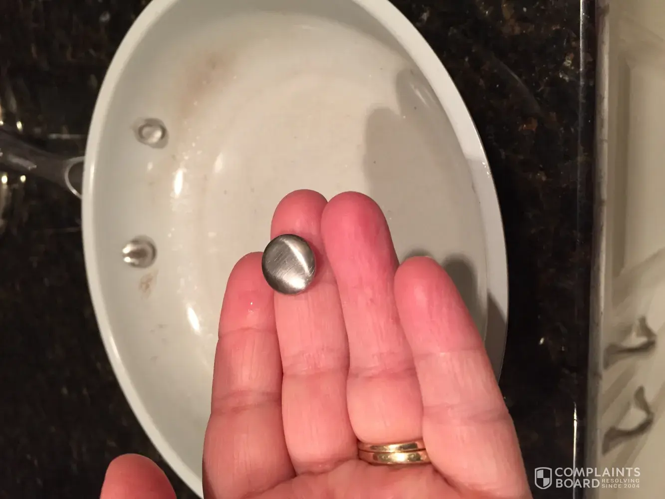 I finally bought a new set of pots and pans last year from kohls, the foodnetwork ceramic coated. Yesterday I was cooking eggs and sausage for breakfast and the cap cover on the inside of pan connected to the handle popped off like a gun shot hitting my ceiling then onto the floor. Thank god it didn't hit me in the eye! Scared me to death! at this point I'm afraid to continue using these pots and pans and would like to be reimbursed. Please let me know what my next step is, thank you!