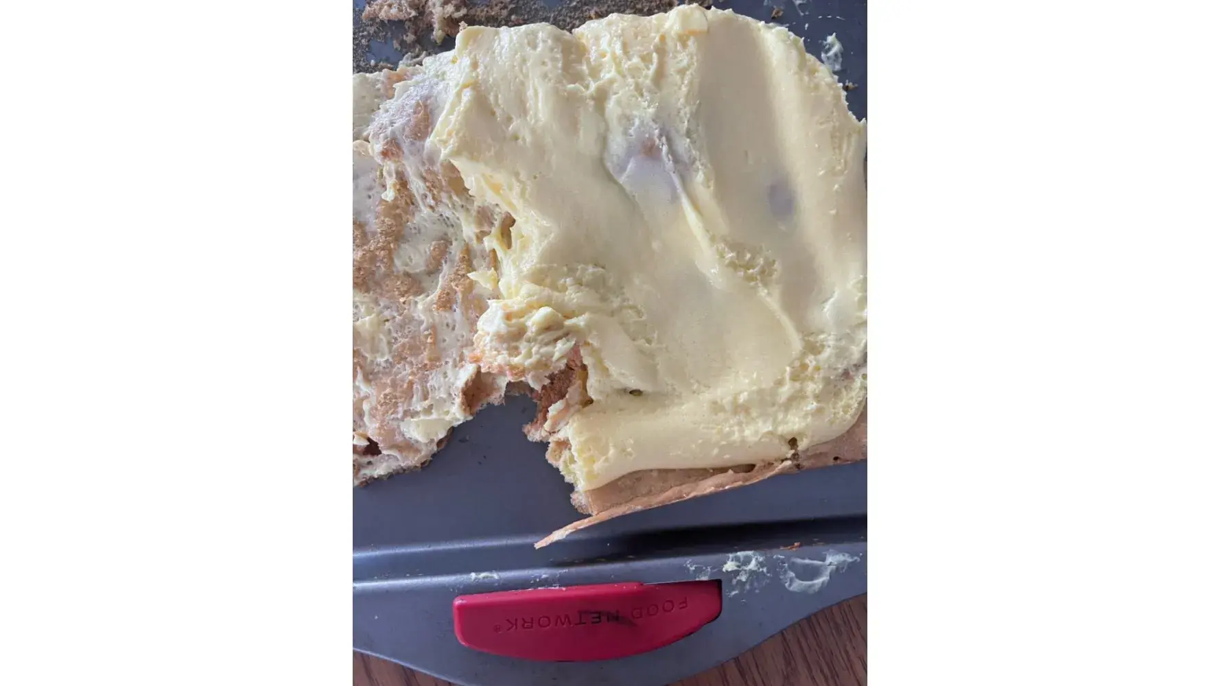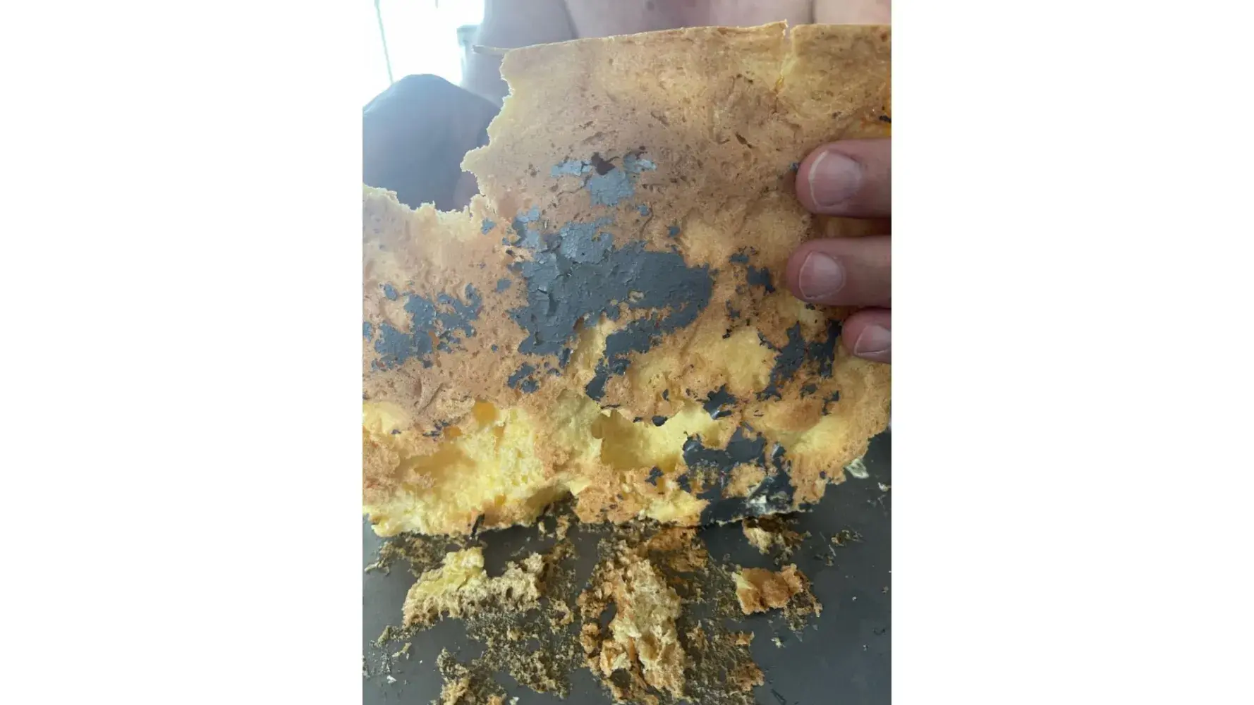 I received a non-stick jelly roll pan for a gift approx. 2 years ago at Christmas. I loved the pan and always stored it with bubble wrap so there was no direct contact with other pans I have. This week I made a torte and discovered the strangest thing. After we had eaten approximately half of the torte I could see small specks of a gray material loose on the pan. I looked under the crust of the torte and almost threw up! It was covered with gray material all over the curst. I feed this dessert to my 86 year old mother, 2 small grandchildren, my husband, son and myself. I took pictures of the torte crust as well as the pan. I can't believe this would happen. Has there been other issues?
