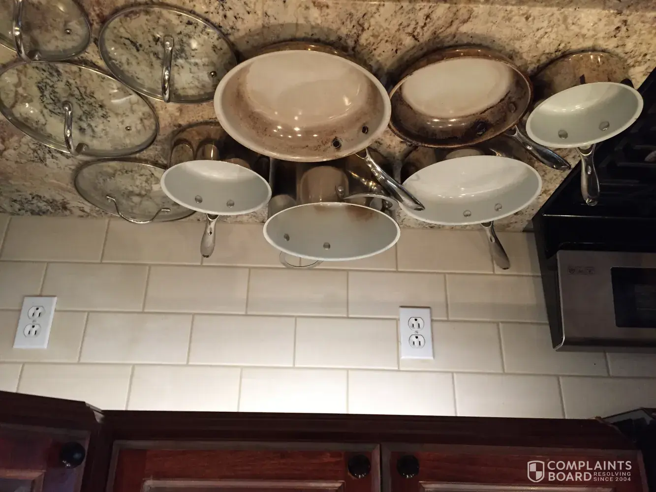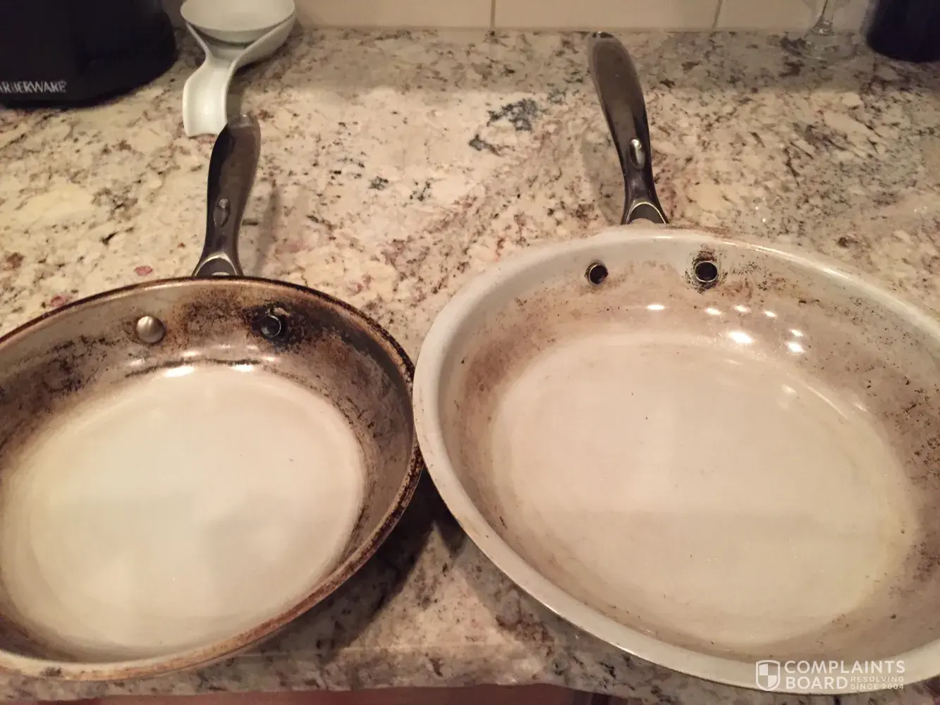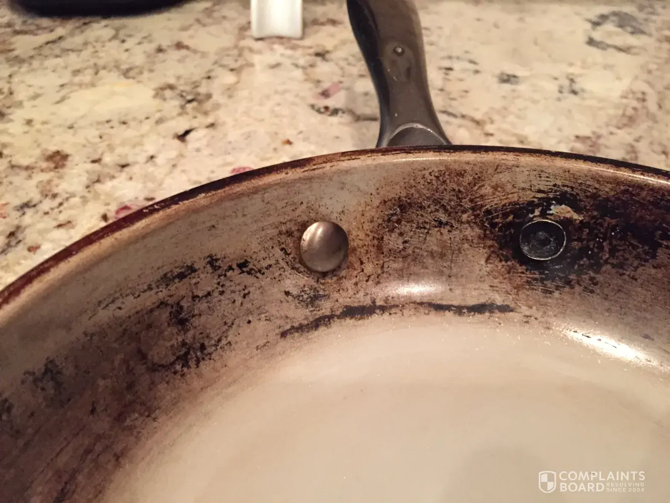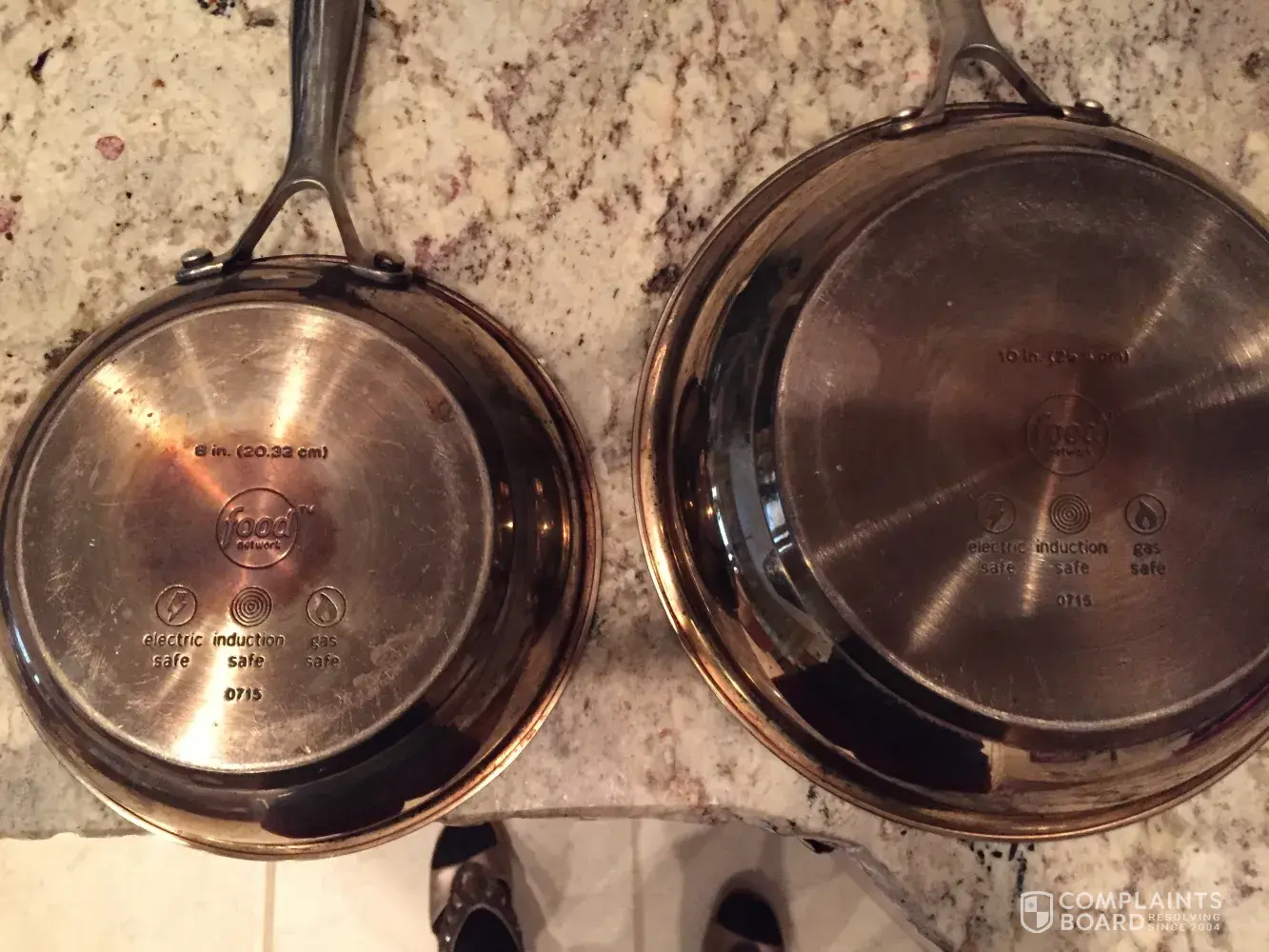 I bought this set through Kohl's about year ago and I am not happy at all about it. They are extremely dangerous and built poorly, two of the pans exploded when I was cooking. I have pictures attached below. I had to stop using all the pans for safety reasons, it might happen the same with the other ones & ended up with a trip to the ER if they hit me or anyone in kitchen area when I am cooking. Horrible set, I am sure this is not the first complaining you receive about those things. My name is Liziane Raley, phone number [protected], email: [protected]@hotmail.com
