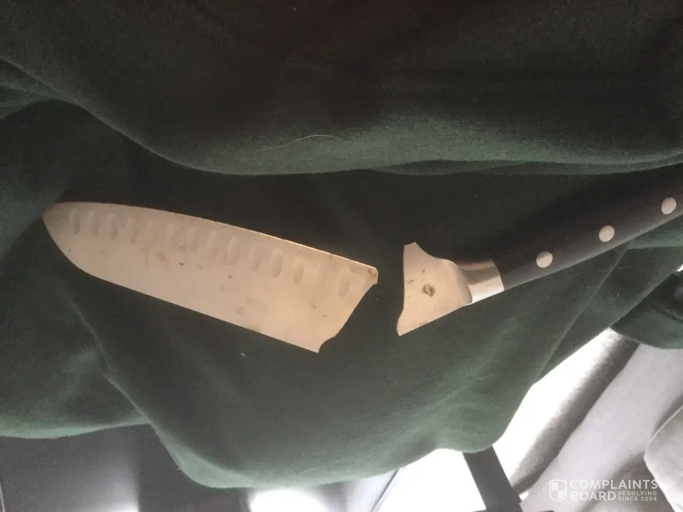 Cutting knife blade broke off about an inch from the handle while cutting a squash.