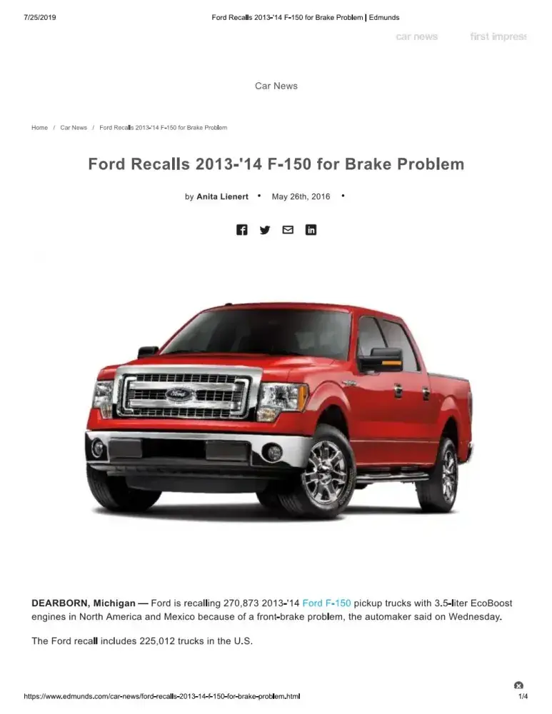 The Ford recall includes 225, 012 trucks in the U.S.
