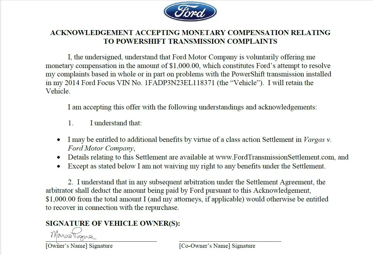 The Ford motor company propomised on December 12, 2022 to make a one time payment of $1,000.00 as a goodwill gesture for not having aTCM (Transmission Control Module) to fix an issue with our Ford Focus whcih had been occuring for the past nine months, during which time the car was completely unusable, but then reneged on the pormise. The car was still fully covered under warranty and the company has refused to return any attempts on our part to communicate with them.