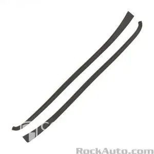 BUT THEN I HAD THIS GOD-SENT IDEA. I work for an international parcel shipping firm and noticed on my deliveries many packages being ordered by customers from a company called RockAuto.com. So I went to the site and discovered not only was the part available but it was cheap. So I ordered both the right and left side molding and received it within a week here on the west coast of Canada. Even though the molding comes with a peel and stick adhesive strip on each side, I had to slice off about 1/4" from the width (taking most of the one adhesive strip with it) in order for it to fit just right and not overlap the ridge of the metal pillar (remember the molding is designed so a new windshield fits both over one edge and under the other). For the majority of the strip, the second adhesive strip remaining was sufficient to hold it in place but at the top of the windshield where it curves, I used a quick-setting clear epoxy from JB Weld.