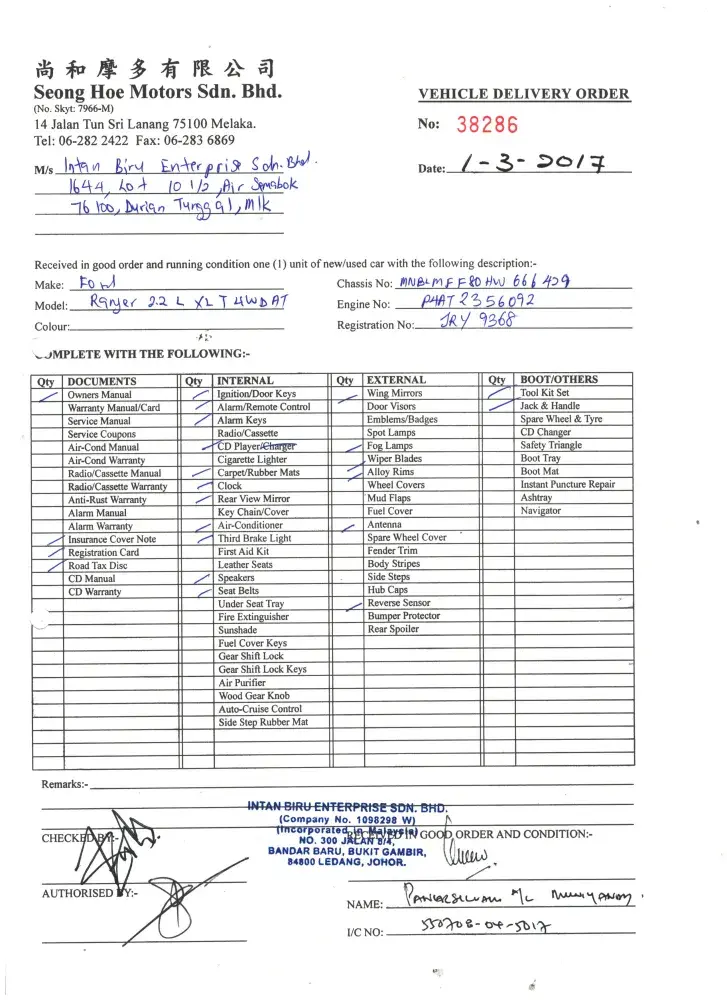 I went to Branch Seong Hoe Motors sdn Bhd your authorized dealer for FORD dealer for maintenance and services purposes and told them the problem and they also listen to my problem and taken some action by changing "6R80 Transmission Main Control" but still the problem has not been settled till today but other than there is no other problem in my ford ranger.