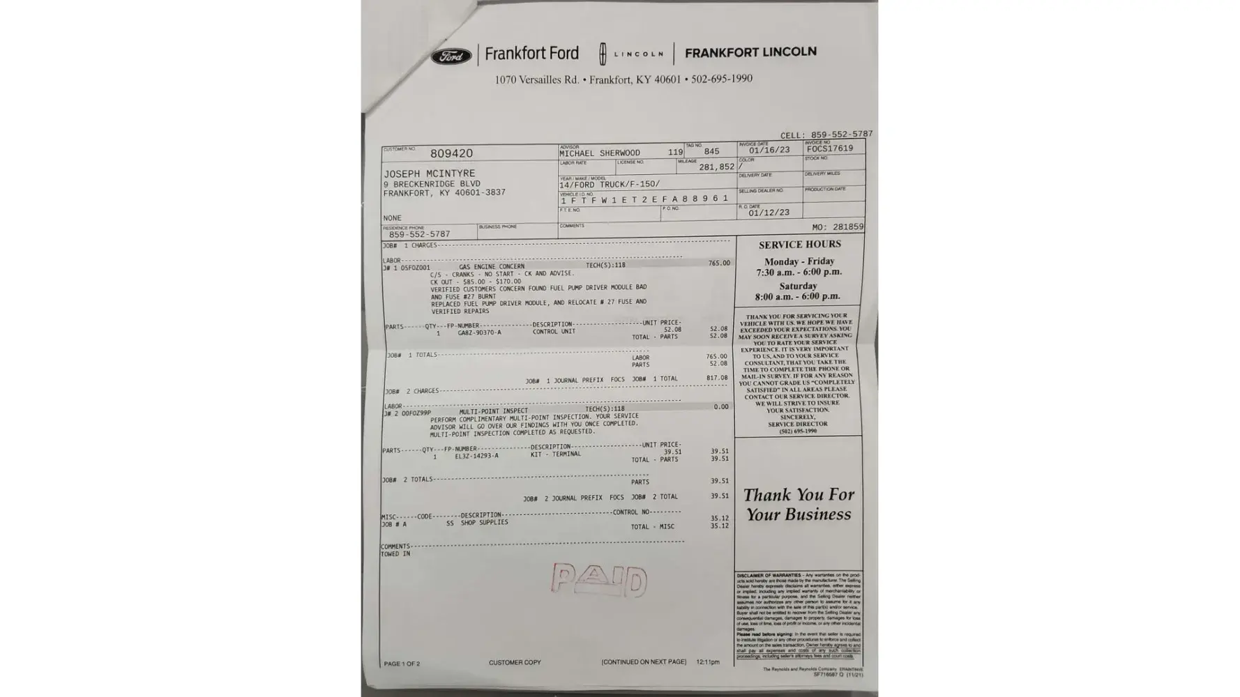 Desired outcome: I want keys cut and programmed so my car will start so i can sell it... If they did nothing wrong why didn't i get any paperwork or a bill? First and last ford