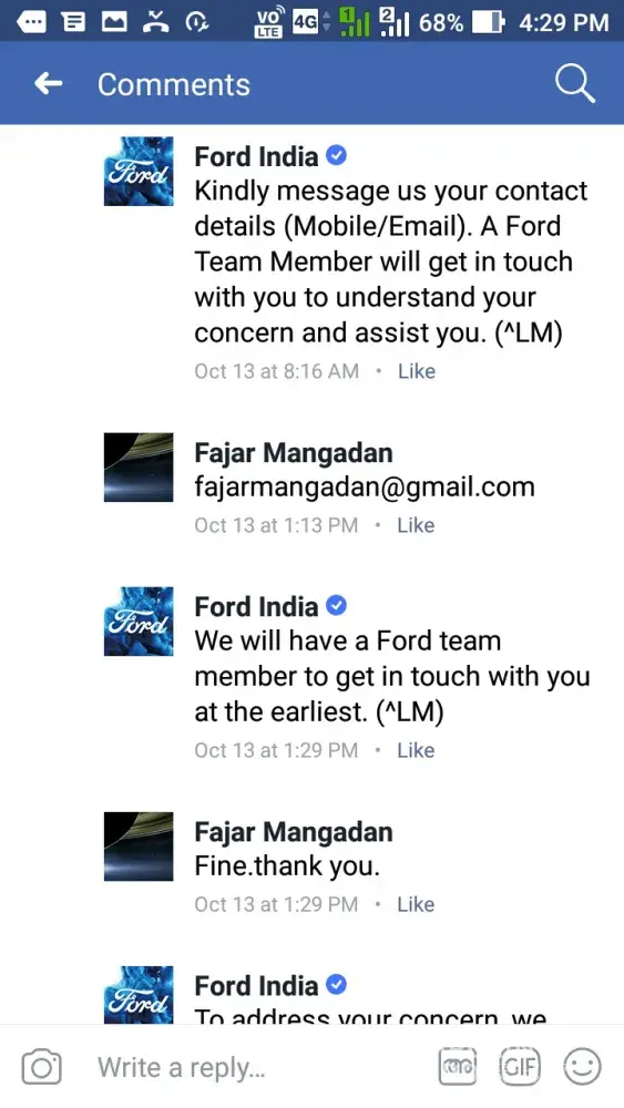 Please refer complaint number #9216, 19, 20 etc in the below link- to realize the high quality testing results of Mr Ford (INDIA) as shown by them in the posted video.